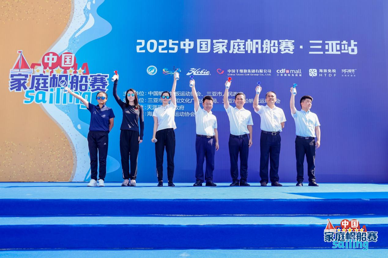 Vice President of the China Sailing and Windsurfing Association Fu Danqing, Deputy Secretary General of the Sanya Municipal Government Xie Yifa, Director of the Development Department of the China Sailing and Windsurfing Association Zhang Mengdi, Level Four Researcher of the Sanya Bureau of Tourism, Culture, Radio, Television, and Sports Yang Yi, Deputy District Mayor of Tianya District Xu Heyu, President of the North Pacific Region of the International Hobie Class Association Ding Zhenghang, and representative of the China Stem Cell Group Wang Le attended the opening ceremony.