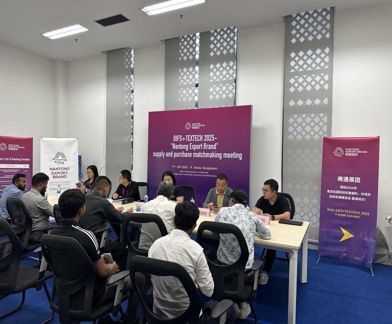 On the afternoon of September 12 (local time), with the joint support of the Nantong Municipal Bureau of Commerce and Nantong Foreign Trade Group Co., Ltd., a professional matchmaking event aimed at helping “Nantong Premium Products” expand overseas was successfully held, with active participation from representatives of multiple Nantong exhibitors.Through precise matching and efficient negotiations, the event provided strong support for enterprises to expand into international markets and explore potential cooperation opportunities. With the collaborative efforts of relevant departments, Nantong companies are accelerating their pace of “going global,” continuously enhancing the visibility and competitiveness of “Nantong Textiles” in the international market, while further strengthening the overall brand image of “Nantong Premium Products.”