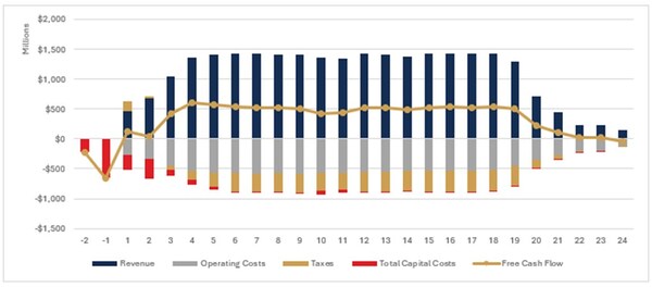 Estimated to indicatively generate approximately $8.3 billion in Project Cash Flow (unlevered) over LOM.