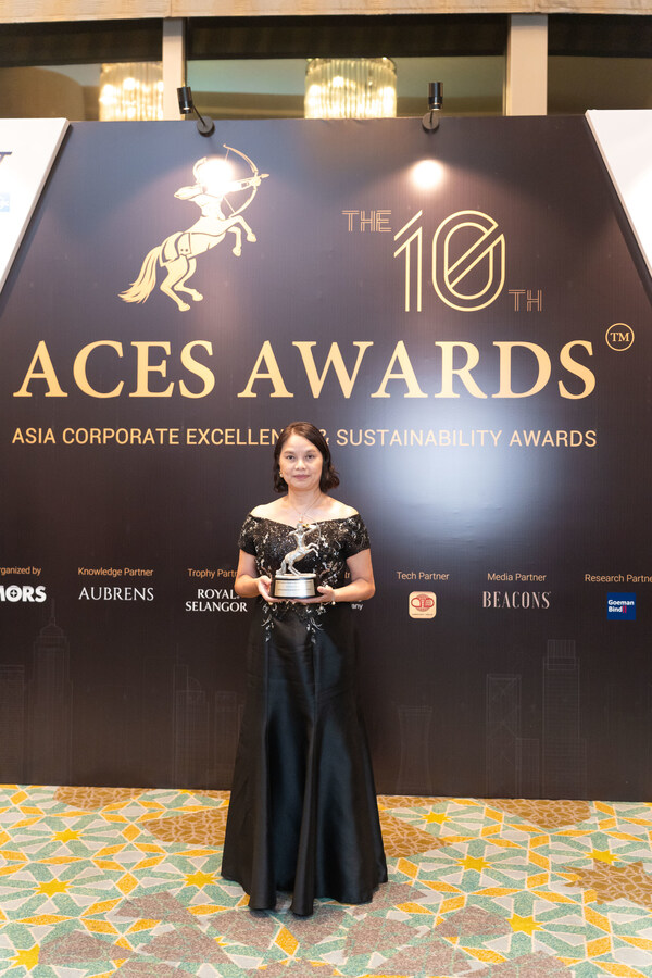 DBP Senior Vice President for Operations Catherine Magana receives the Top Sustainability Advocates in Asia award under the Sustainability category of the Asia Corporate Excellence and Sustainability (ACES) Awards 2023 during the ceremony held in Kuala Lumpur,Malaysia.