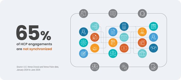 Disconnected sales and marketing activities don't optimize limited HCP time:Today,65% of HCP engagements are not synchronized.Amidst decreasing time and attention from HCPs,sales and marketing cannot coordinate effective HCP conversations without a connected view.
