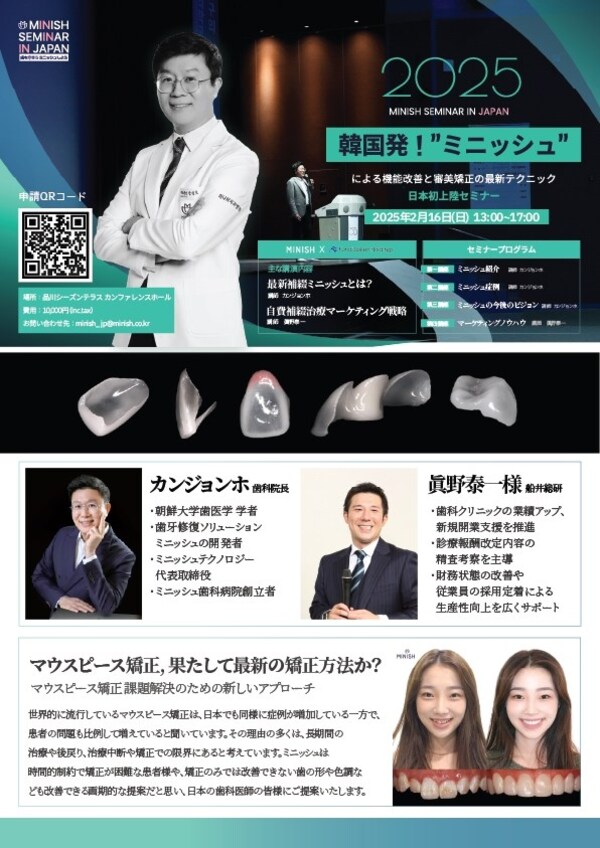 Choi RockSun,PR manager at MINISH Technology Inc,stated,"Interest in MINISH is rising in the Japanese dental market as an alternative to mouthpiece orthodontics. We hope this seminar will provide Japanese dentists with a deeper understanding of the high-end dental treatment,MINISH."