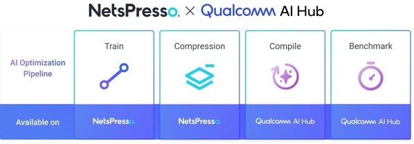 Through its four-step process—training,compression,compilation,and benchmarking—NetsPresso® optimizes AI models for resource-limited devices. Compilation and benchmarking,previously managed by NetsPresso®,can now be handled within Qualcomm Technologies' ecosystem,enhancing efficiency and enabling NetsPresso® to focus on training and compression for improved overall optimization.