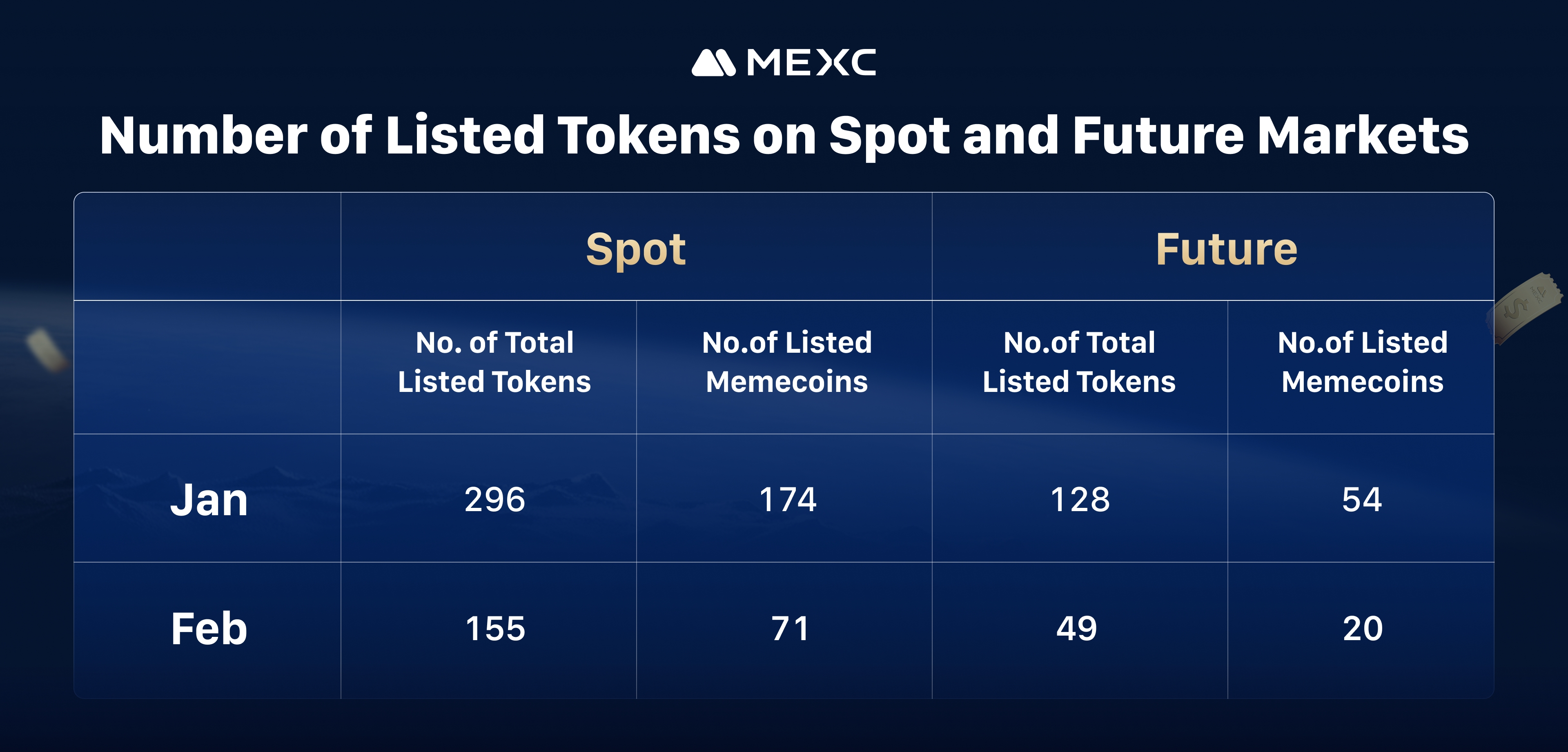 VICTORIA, Seychelles, 13 March 2025 — MEXC, the leading global cryptocurrency exchange, has released token listing and trading data for January and February, highlighting strong market demand for new tokens, particularly memecoins, despite overall market volatility and downturn.