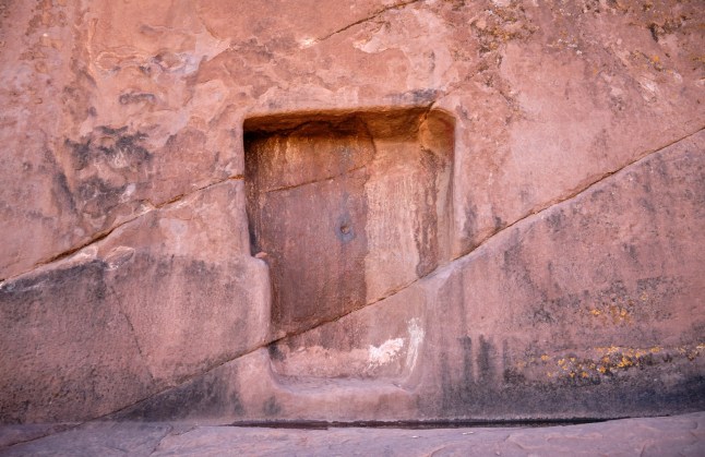 Legend has it that an Inca priest in possession of a golden disk,placed it in a small depression in the doorway.