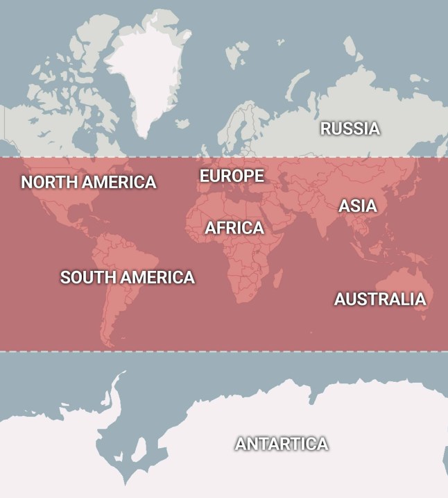 The craft is predicted to land anywhere between 52° north and 52° south – which covers the entirety of Africa,South America,Asia,Australia,and huge swathes of Europe and North America.