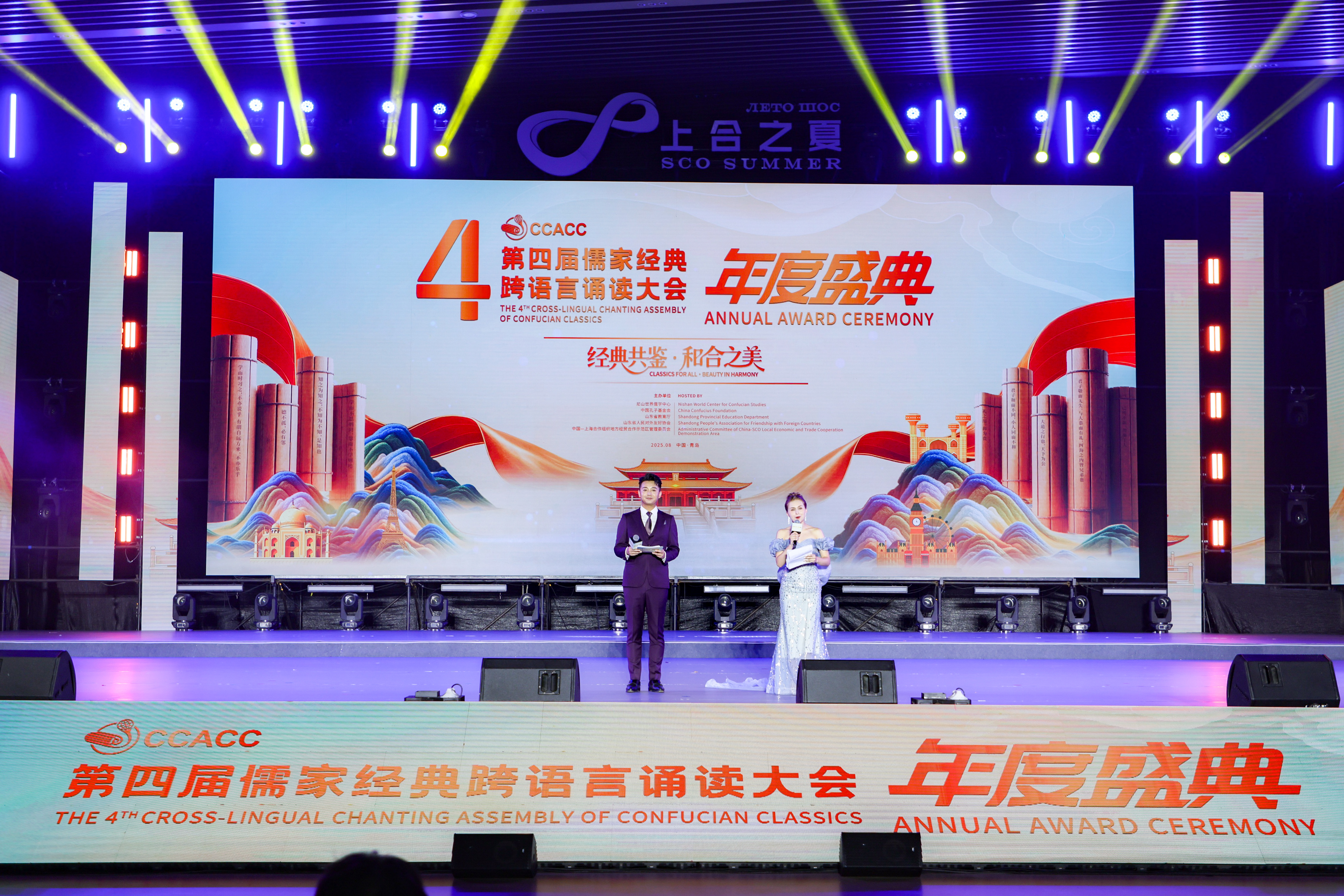 The annual ceremony of the Fourth Cross-Linggual Chanting Assembly of Confucian Classics (International Relay of Chinese Classics Recitation) is jointly organized by the Nishan World Center for Confucian Studies, China Confucius Foundation, Shandong Provincial Department of Education, Shandong Provincial People's Association for Friendship with Foreign Countries, and the Management Committee of the China-Shanghai Cooperation Organization Local Economic and Trade Cooperation Demonstration Zone.