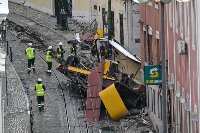 A routine journey which sees the railway take dozens of people up Lisbon’s steep hill went wrong after the train derailed and smashed into a building.